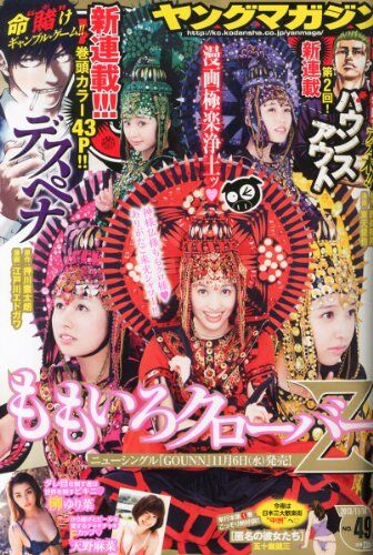 表紙&巻頭グラビア ももいろクローバーZ というわけで、今週のヤンマガの表紙もももいろクローバーZ。新曲「GOUNN」の衣装でやっぱり派手な表紙になっています。 で、グラビアは「食欲の秋祭り」って事で、パティシエに扮してパンケーキやよくわからないピザ…